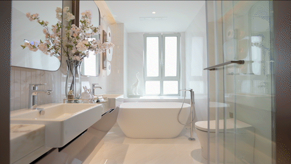 卫生间洗手台和柜体完满切割圆弧线,抽屉和水管贴合的处所贴心的做了凹槽,这既是对审美分歧的苛求,也贴心考量平安性。